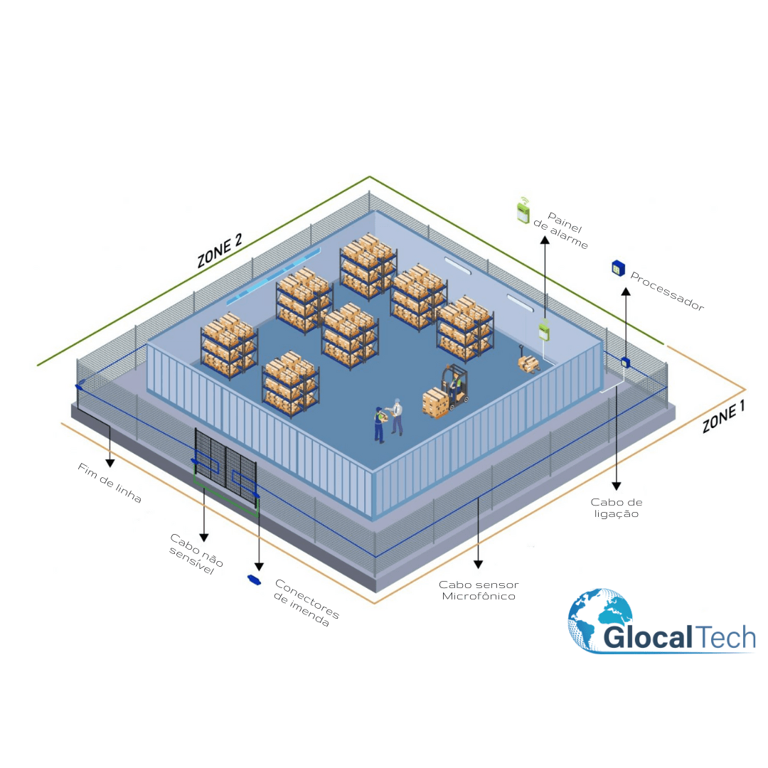 O cabo microfônico da Glocal Tech é um sistema de detecção de choque para cercas, o cabo é conectado à cerca para detectar qualquer corte, escalada, levantamento ou salto da cerca. Uma única linha do cabo no meio da cerca detectará toda a altura da cerca até 10 pés/3 m contra qualquer tentativa de invasão.